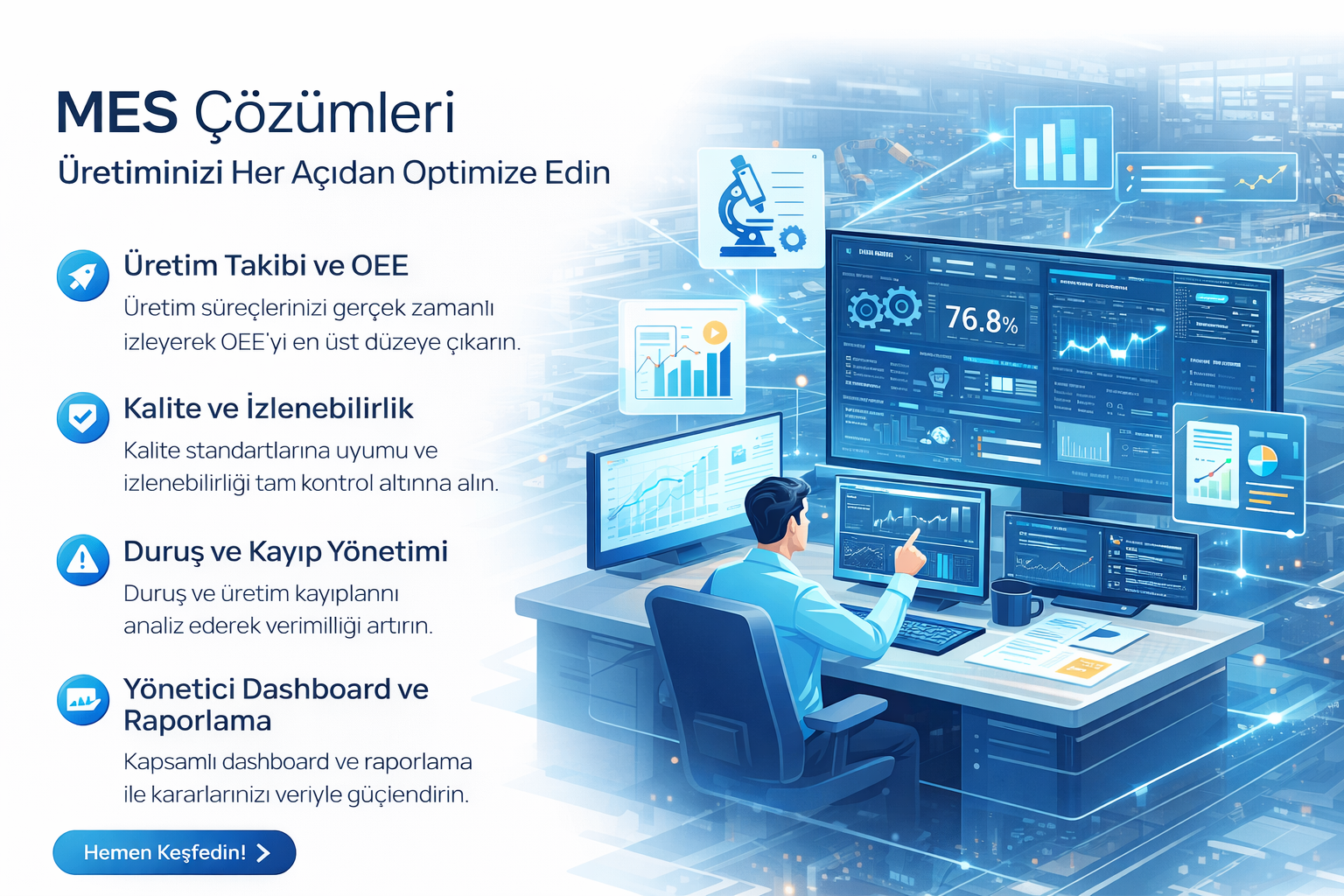 Modüler MES çözümlerimizle üretim süreçlerinizi optimize edin, operasyonel mükemmelliğe ulaşın.