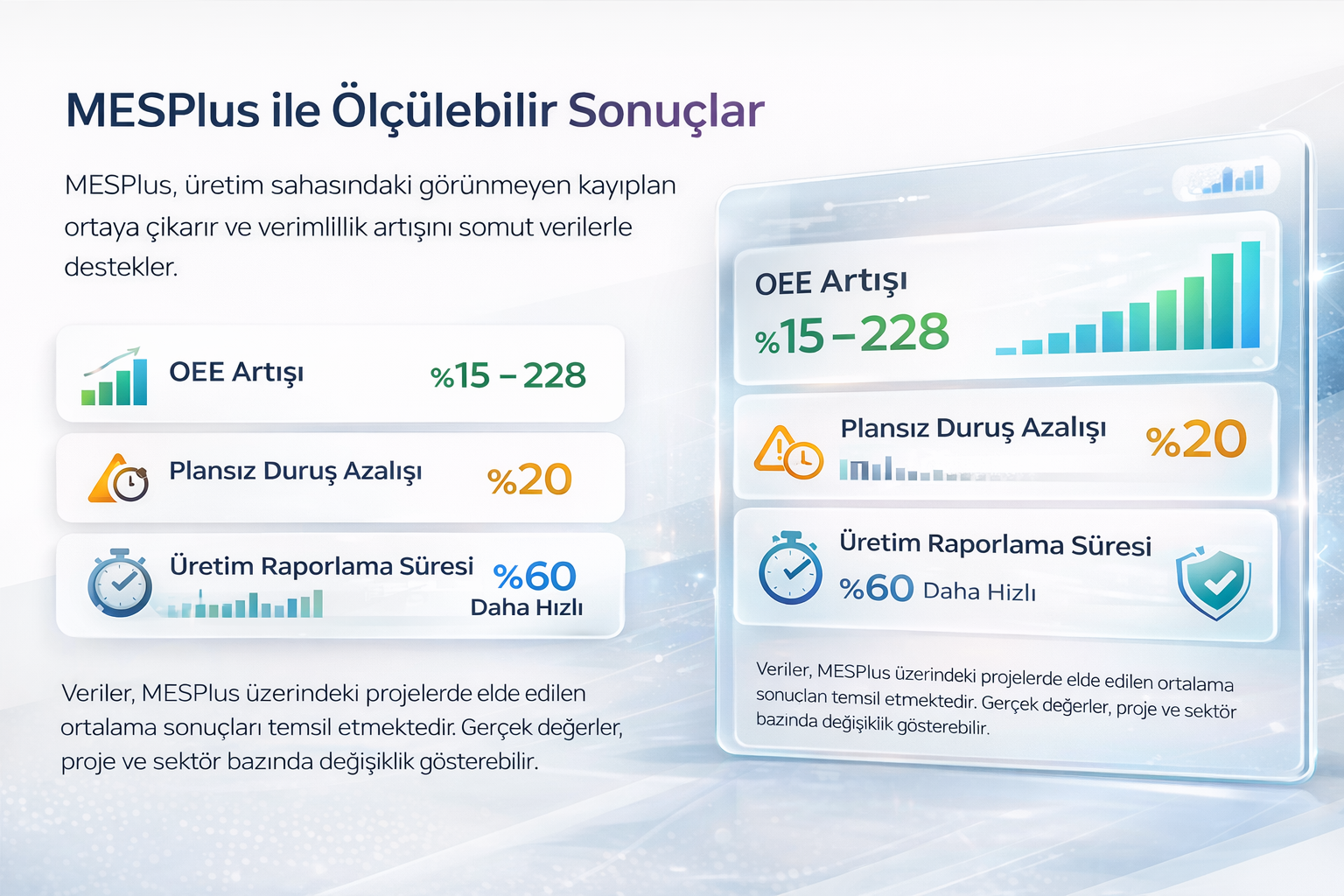 MESPlus, üretiminizi anlık izler, kayıpları görünür hale getirir ve verimsizliği sistematik olarak ortadan kaldırır.